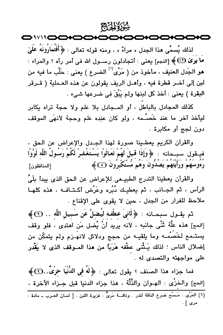 والقرآن يعطينا التدرج الطبيعي للإعراض عن الحق الذي يبدأ بلَىِّ الرأس، ثم الجانب، ثم يعطيك دُبُره وعَرْض أكتافه، هذه كلها ملاحظ للفرار من الجدل، حين لا يقوى على الإقناع.