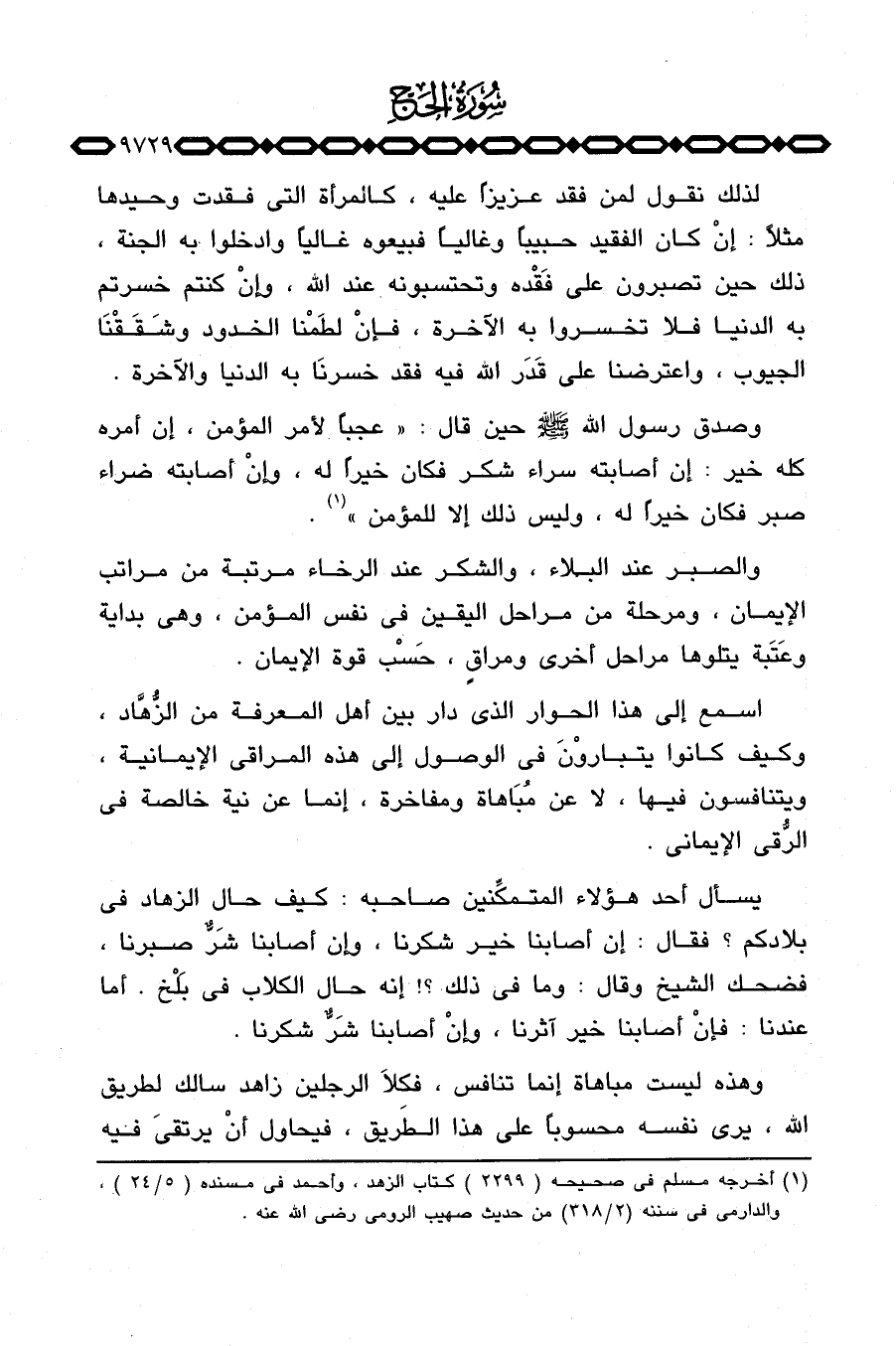 وصدق رسول الله صَلَّى اللَّهُ عَلَيْهِ وَسَلَّم َ حين قال: «عجباً لأمر المؤمن، إن أمره كله خير: إن أصابته سراء شكر فكان خيراً له، وإنْ أصابته ضراء صبر فكان خيراً له، وليس ذلك إلا للمؤمن» .