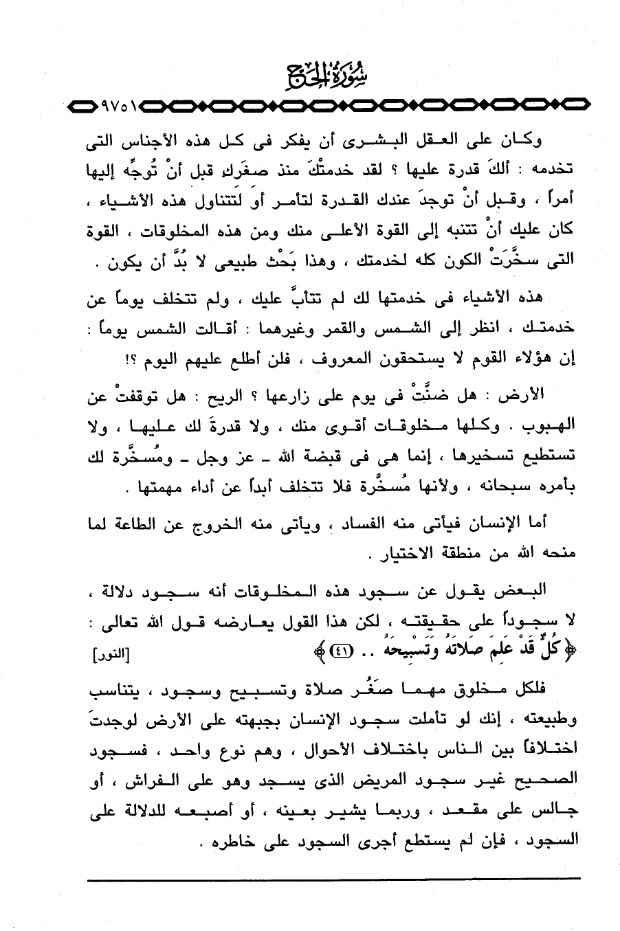 وكان على العقل البشري أن يفكر في كل هذه الأجناس التي تخدمه: ألك قدرة عليها؟ لقد خدمتْكَ منذ صِغَرِك قبل أنْ تُوجِّه إليها أمراً، وقبل أنْ توجدَ عندك القدرة لتأمر أو لتتناول هذه الأشياء، كان عليك أنْ تتنبه إلى القوة الأعلى منك ومن هذه المخلوقات، القوة التي سخَّرَتْ الكون كله لخدمتك، وهذا بَحْث طبيعي لا بُدَّ أن يكون.