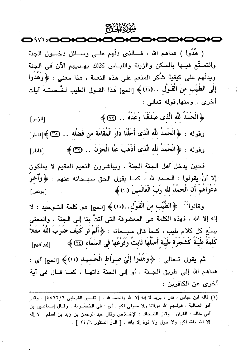 (هُدُوا) هداهم الله، فالذي دلّهم على وسائل دخول الجنة والتمتّع فيها بالسكن والزينة واللباس كذلك يهديهم الآن في الجنة ويدلّهم على كيفية شُكر المنعم على هذه النعمة، هذا معنى: {وهدوا إِلَى الطيب مِنَ القول. .} [الحج: 24] هذا القول الطيب لخَّصته آيات أخرى، ومنها قوله تعالى: {الحمد للَّهِ الذي صَدَقَنَا وَعْدَهُ. .} [الزمر: 74] .