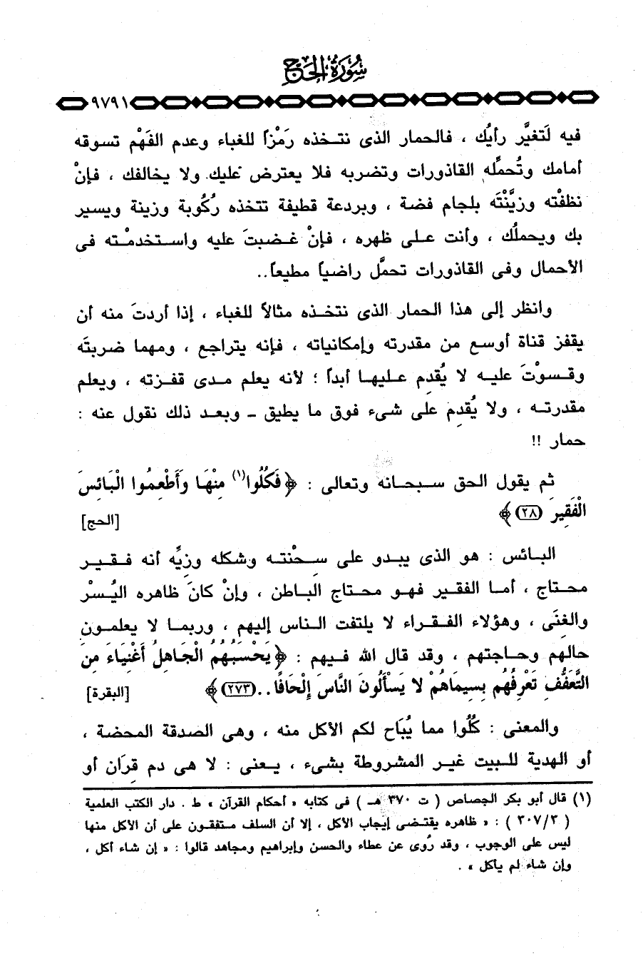 وانظر إلى هذا الحمار الذي نتخذه مثالاً للغباء، إذا أردتَ منه ان يقفز قناة أوسع من مقدرته وإمكانياته، فإنه يتراجع، ومهما ضربتَه وقسْوتَ عليه لا يُقدِم عليها أبداً؛ لأنه يعلم مدى قفزته، ويعلم مقدرته، ولا يُقدِم على شيء فوق ما يطيق - وبعد ذلك نقول عنه: حمار!!