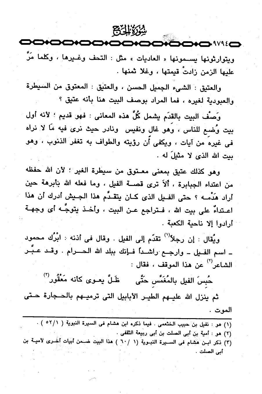 وهو كذلك عتيق بمعنى معتوق من سيطرة الغير؛ لأن الله حفظه من اعتداء الجبابرة، ألاَ ترى قصة الفيل، وما فعله الله بأبرهة حين أراد هَدْمه؟ حتى الفيل الذي كان يتقدَّم هذا الجيش أدرك أن هذا اعتداءٌ على بيت الله، فتراجع عن البيت، وأخذ يتوجَّه أي وجهة أرادوا إلا ناحية الكعبة.