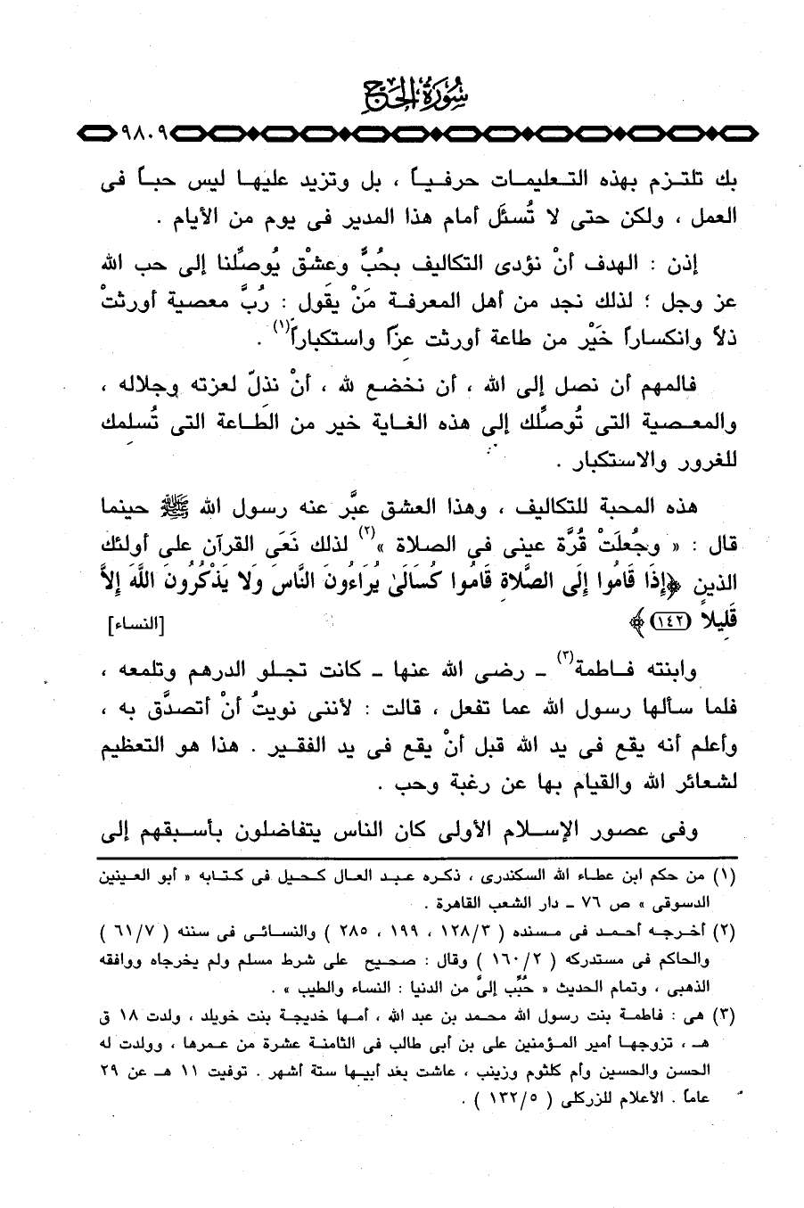 هذه المحبة للتكاليف، وهذا العشق عبَّر عنه رسول الله صَلَّى اللَّهُ عَلَيْهِ وَسَلَّم َ حينما قال: «وجُعلَتْ قُرَّة عيني في الصلاة» لذلك نَعَي القرآن على أولئك الذين {إِذَا قاموا إِلَى الصلاة قَامُواْ كسالى يُرَآءُونَ الناس وَلاَ يَذْكُرُونَ الله إِلاَّ قَلِيلاً. .} [النساء: 142] .