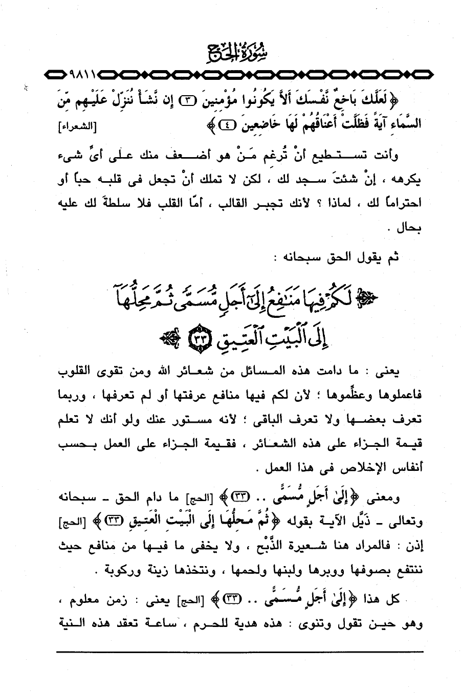 ومعنى {إلى أَجَلٍ مُّسَمًّى. .} [الحج: 33] ما دام الحق - سبحانه وتعالى - ذَيَّل الآية بقوله {ثُمَّ مَحِلُّهَآ إلى البيت العتيق. .} [الحج: 33] .