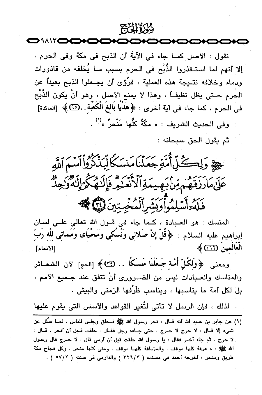 ثم يقول الحق سبحانه: {وَلِكُلِّ أُمَّةٍ جَعَلْنَا مَنسَكاً لِّيَذْكُرُواْ اسم الله على مَا رَزَقَهُمْ مِّن بَهِيمَةِ الأنعام. .} .