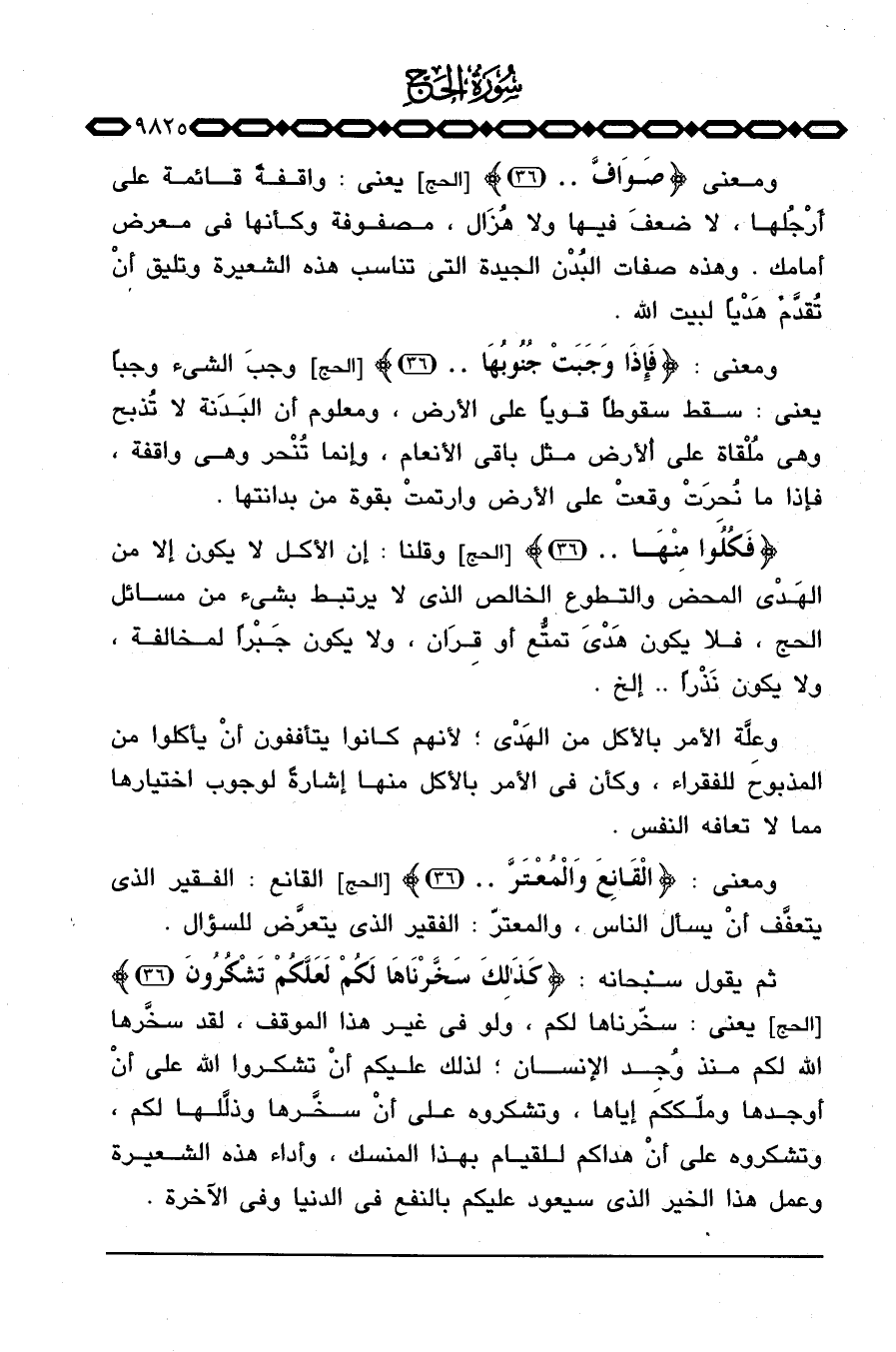 ثم يقول سبحانه: {كذلك سَخَّرْنَاهَا لَكُمْ لَعَلَّكُمْ تَشْكُرُونَ. .} [الحج: 36] يعني: سخّرناها لكم، ولو في غير هذا الموقف، لقد سخَّرها الله لكم منذ وُجِد الإنسان؛ لذلك عليكم أنْ تشكروا الله على أنْ أوجدها وملّككم إياها، وتشكروه على أنْ سخَّرها وذلَّلها لكم، وتشكروه على أنْ هداكم للقيام بهذا المنسك، وأداء هذه الشعيرة وعمل هذا الخير الذي سيعود عليكم بالنفع في الدنيا وفي الآخرة.
