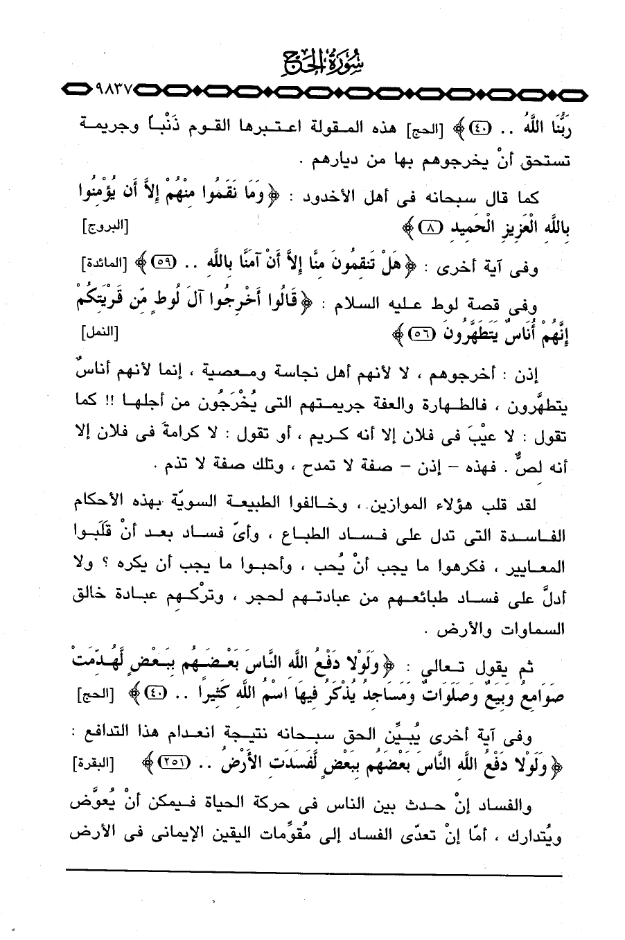 ثم يقول تعالى: {وَلَوْلاَ دَفْعُ الله الناس بَعْضَهُمْ بِبَعْضٍ لَّهُدِّمَتْ صَوَامِعُ وَبِيَعٌ وَصَلَوَاتٌ وَمَسَاجِدُ يُذْكَرُ فِيهَا اسم الله كَثِيراً. .} [الحج: 40]