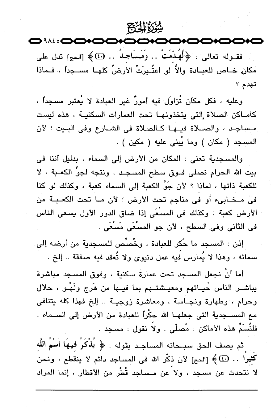 فقوله تعالى: {لَّهُدِّمَتْ. . وَمَسَاجِدُ. .} [الحج: 40] تدل على مكان خاص للعبادة وإلاَّ لو اعتُبرَتْ الأرضُ كلها مسجداً، فماذا تهدم؟