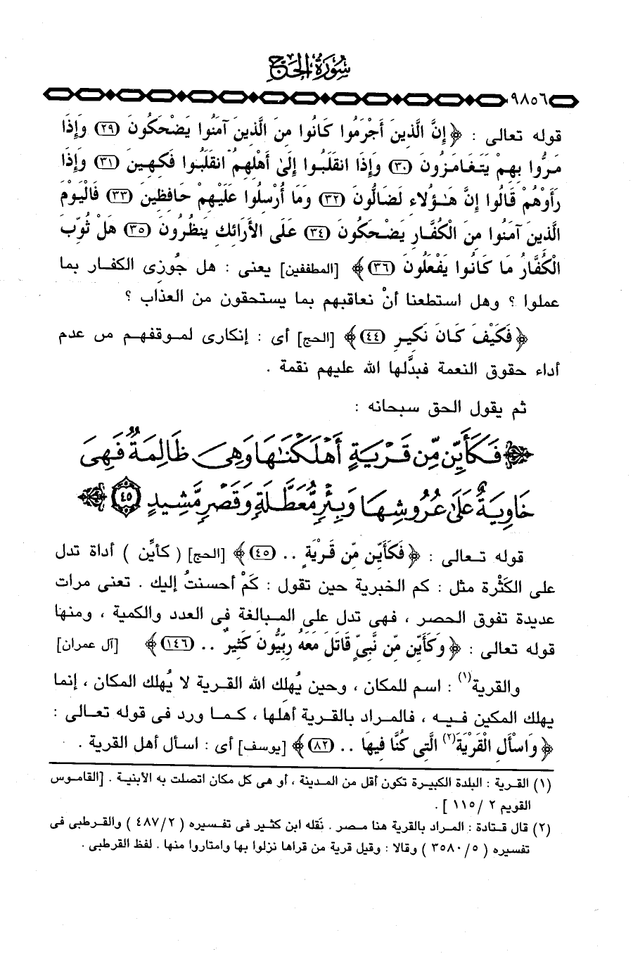 قوله تعالى: {فَكَأَيِّن مِّن قَرْيَةٍ. .} [الحج: 45] (كأيِّن) أداة تدل على الكَثْرة مثل: كم الخبرية حين تقول: كَمْ أحسنتُ إليك. تعني مرات عديدة تفوق الحصر، فهي تدل على المبالغة في العدد والكمية، ومنها قوله تعالى: {وَكَأَيِّن مِّن نَّبِيٍّ قَاتَلَ مَعَهُ رِبِّيُّونَ كَثِيرٌ. .} [آل عمران: 146] .