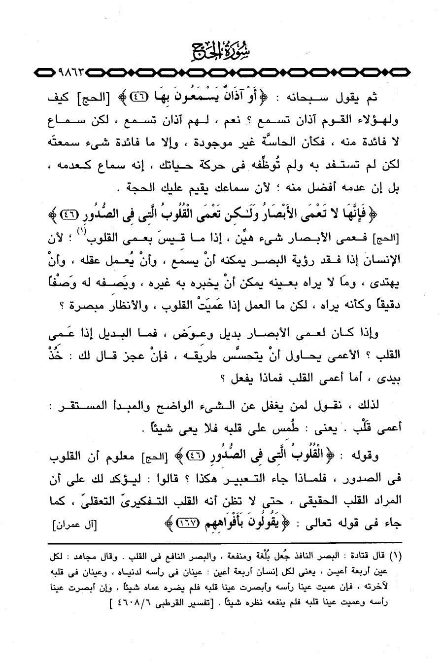{فَإِنَّهَا لاَ تَعْمَى الأبصار ولكن تعمى القلوب التي فِي الصدور} [الحج: 46] فعمي الأبصار شيء هيِّن، إذا ما قِيسَ بعمى القلوب؛ لأن الإنسان إذا فقد رؤية البصر يمكنه أنْ يسمع، وأنْ يُعمل عقله، وأنْ يهتدي، ومَا لا يراه يمكن أنْ يخبره به غيره، ويَصِفه له وَصْفا دقيقاً وكأنه يراه، لكن ما العمل إذا عَميَتْ القلوب، والأنظار مبصرة؟