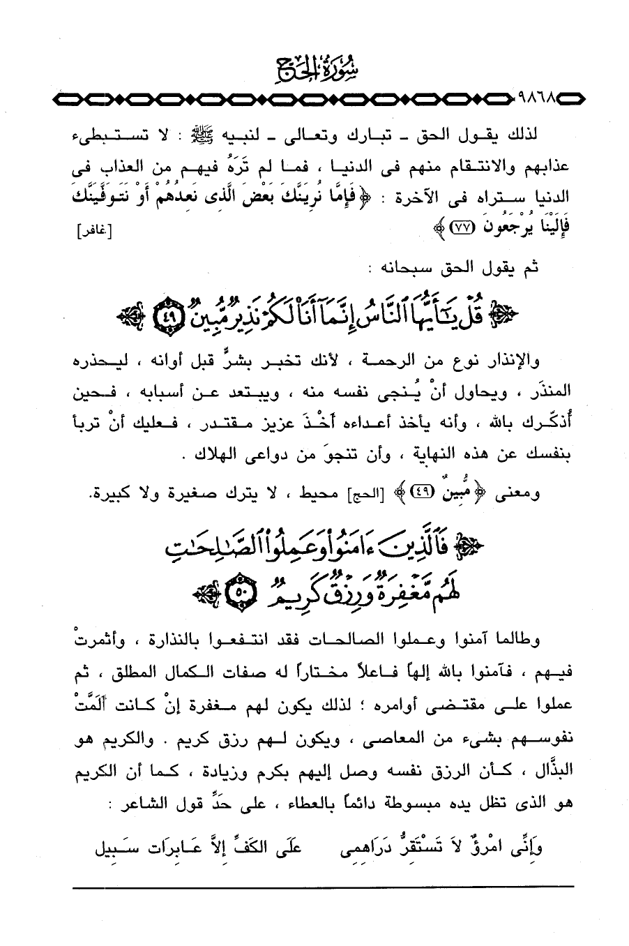 ومعنى {مُّبِينٌ} [الحج: 49] محيط، لا يترك صغيرة ولا كبيرة.