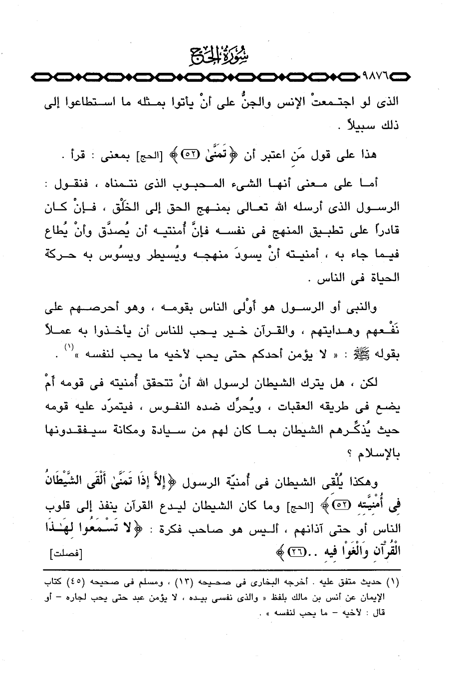 هذا على قول مَنِ اعتبر أن {تَمَنَّى} [الحج: 52] بمعنى: قرأ.