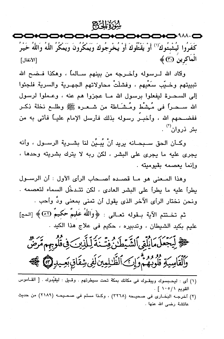 ثم تختتم الآية بقوله تعالى: {والله عَلِيمٌ حَكِيمٌ} [الحج: 52] عليم بكيد الشيطان، وتدبيره، حكيم في علاج هذا الكيد.