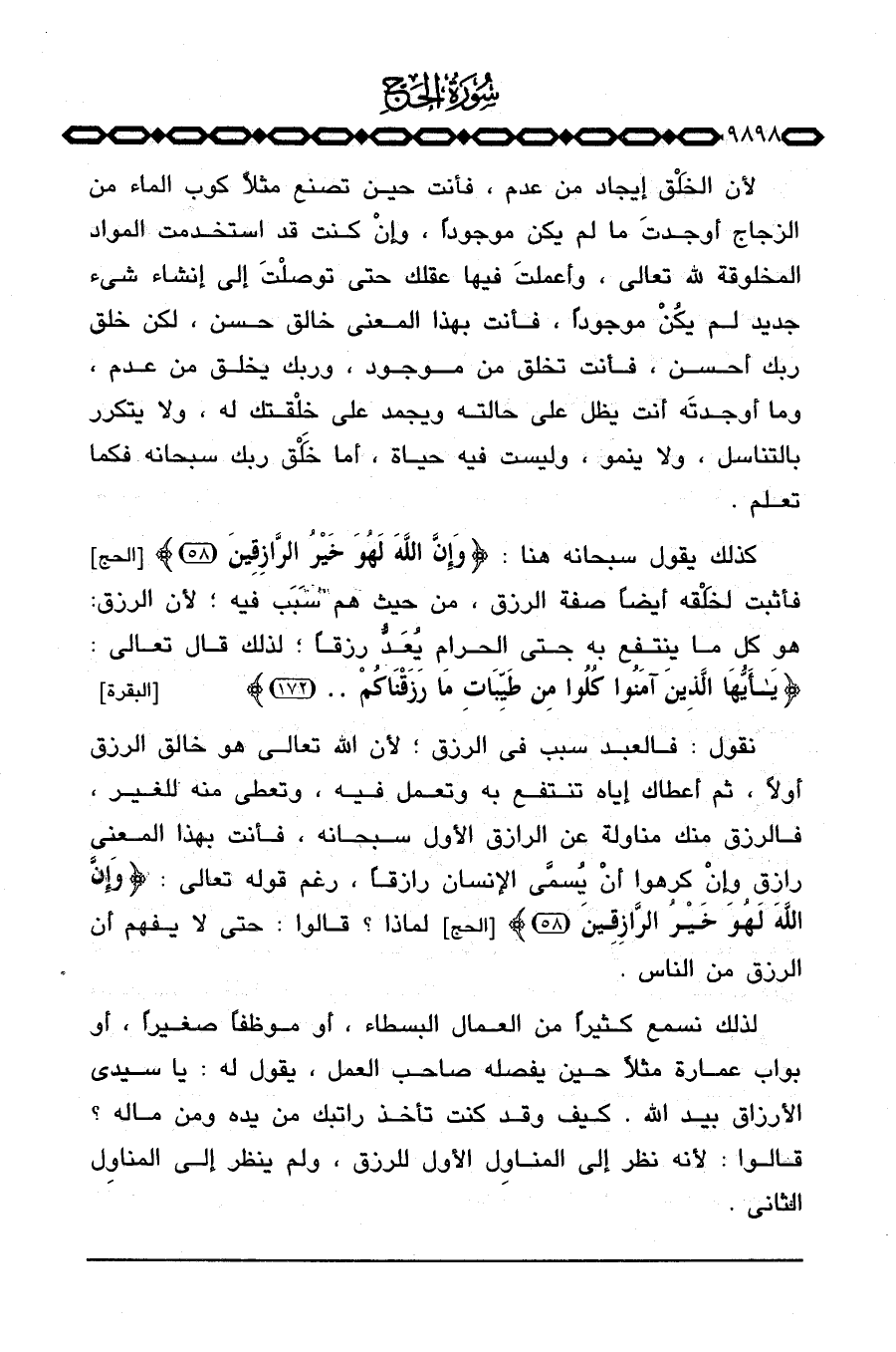 كذلك يقول سبحانه هنا: {وَإِنَّ الله لَهُوَ خَيْرُ الرازقين} [الحج: 58] فأثبت لخَلْقه أيضاً صفة الرزق، من حيث هم سَبَب فيه، لأن الرزق: هو كل ما ينتفع به حتى الحرام يُعَدُّ رزقاً؛ لذلك قال تعالى: {ياأيها الذين آمَنُواْ كُلُواْ مِن طَيِّبَاتِ مَا رَزَقْنَاكُمْ. .} [البقرة: 172] .