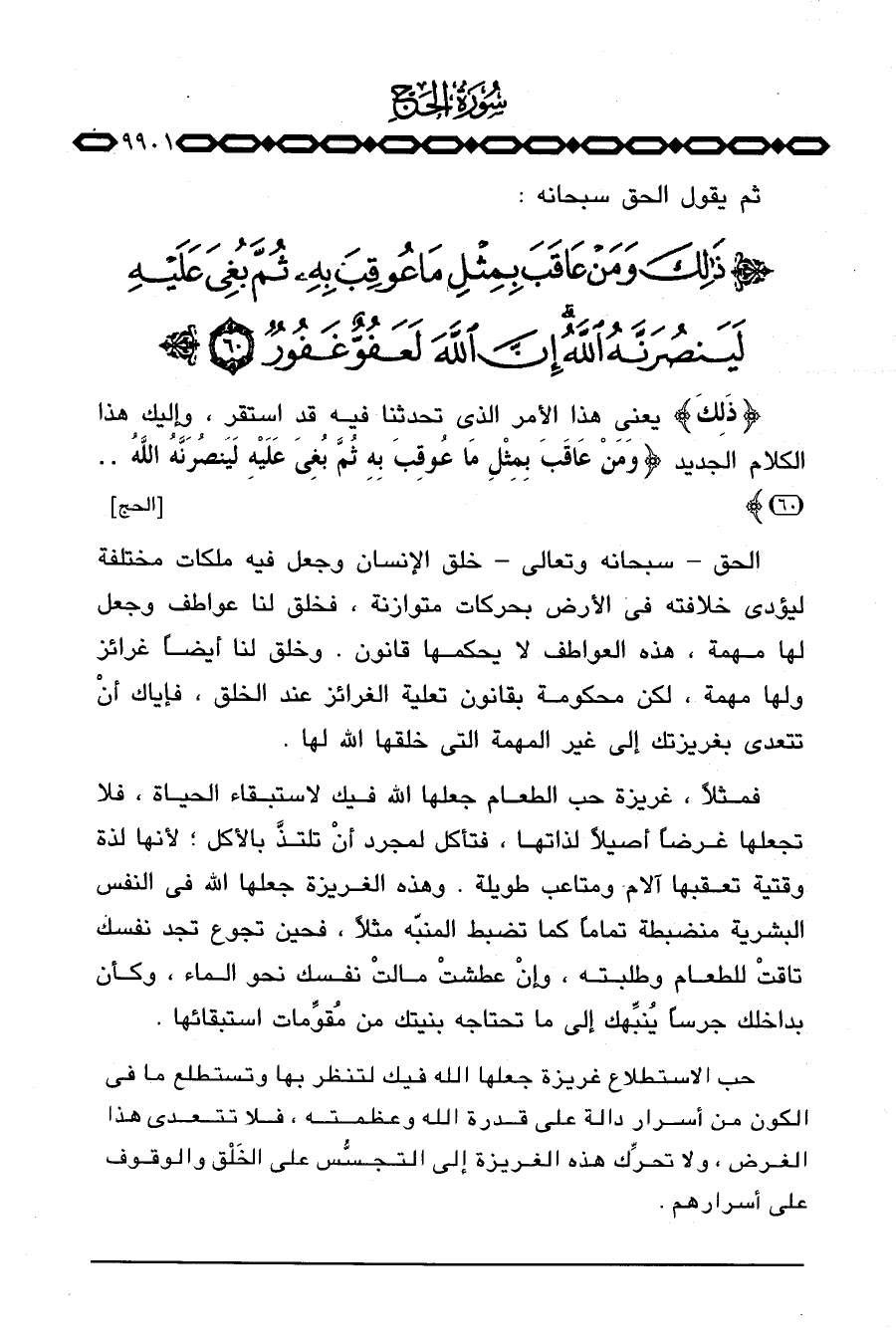 {ذلك} [الحج: 60] يعني: هذا الأمر الذي تحدثنا فيه قد استقر، وإليك هذا الكلام الجديد {وَمَنْ عَاقَبَ بِمِثْلِ مَا عُوقِبَ بِهِ ثُمَّ بُغِيَ عَلَيْهِ لَيَنصُرَنَّهُ. .} [الحج: 60] .