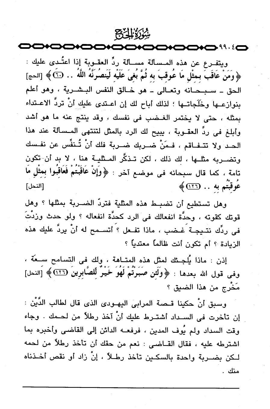 إذن: ماذا يُلجئك لمثل هذه المتاهة، ولك في التسامح سِعَة، وفي قول الله بعدها: {وَلَئِن صَبَرْتُمْ لَهُوَ خَيْرٌ لِّلصَّابِرينَ} [النحل: 126] مَخْرج من هذا الضيق؟