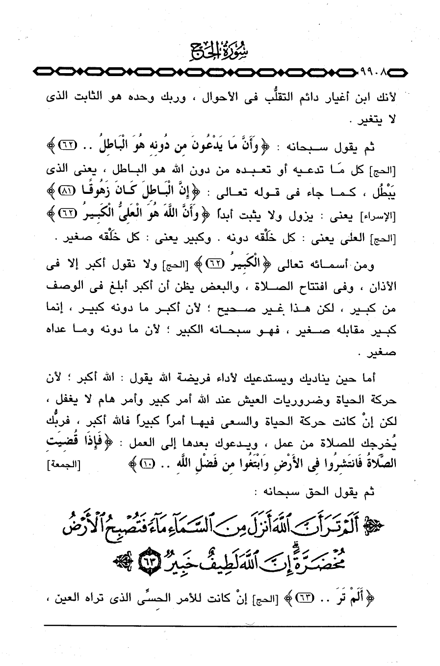 أما حين يناديك ويستدعيك لأداء فريضة الله يقول: الله أكبر؛ لأن حركة الحياة وضروريات العيش عند الله أمر كبير وأمر هام لا يغفل، لكن إنْ كانت حركة الحياة والسعي فيها أمر كبيراً فالله أكبر، فربُّك يُخرجك للصلاة من عمل، ويدعوك بعدها إلى العمل: {فَإِذَا قُضِيَتِ الصلاة فانتشروا فِي الأرض وابتغوا مِن فَضْلِ الله. .} [الجمعة: 10] .