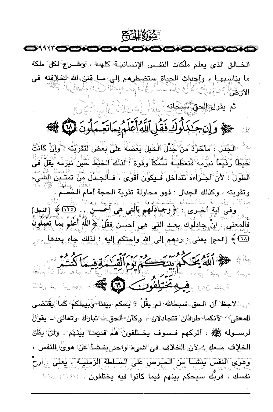 وفي آية أخرى: {وَجَادِلْهُم بالتي هِيَ أَحْسَنُ. .} [النحل: 125] فالمعنى: إنْ جادلوك بعد التي هي أحسن فقُلْ {الله أَعْلَمُ بِمَا تَعْمَلُونَ} [الحج: 68] يعني: ردهم إلى الله واحتكم إليه؛ لذلك جاء بعدها: {الله يَحْكُمُ بَيْنَكُمْ يَوْمَ القيامة. .} .