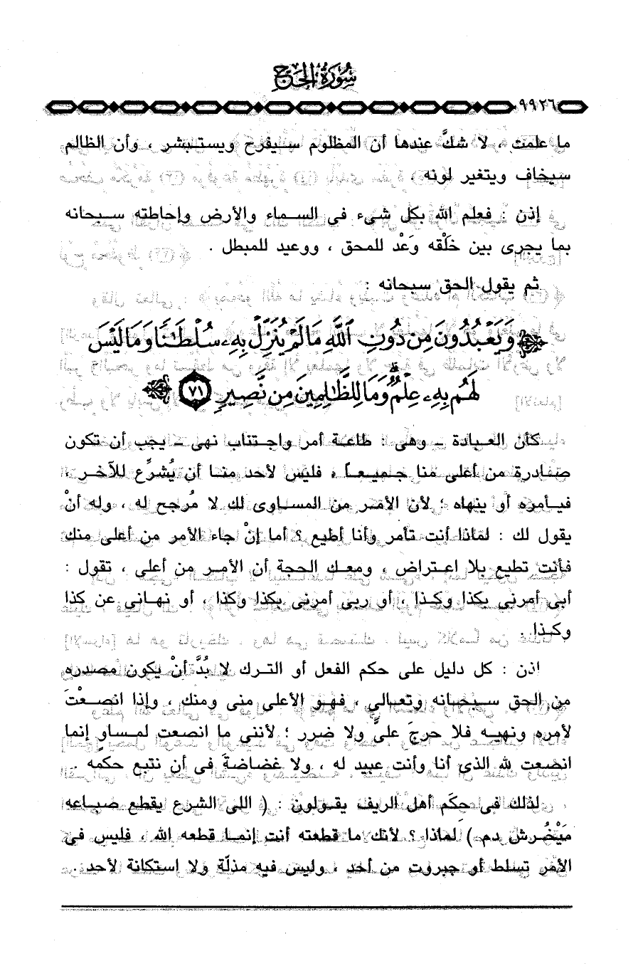 لذلك في حِكَم أهل الريف يقولون: (اللي الشرع يقطع صباعه مَيْخُرش دم) لماذا؟ لأنك ما قطعته أنت إنما قطعه الله، فليس الأمر تسلط أو جبروت من أحد، وليس فيه مذلّة ولا استكانة لأحد.