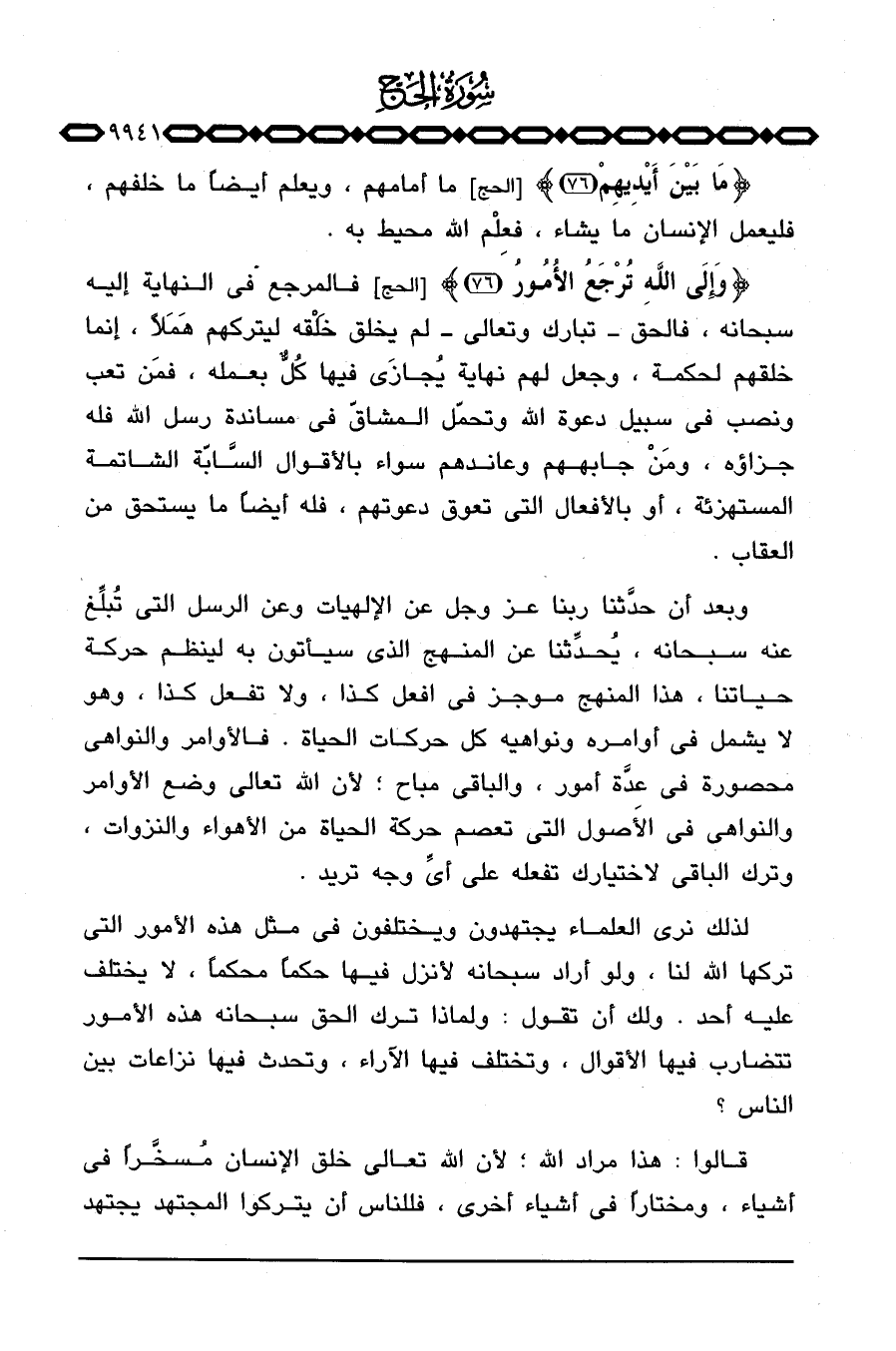 {مَا بَيْنَ أَيْدِيهِمْ} [الحج: 76] ما أمامهم، ويعلم أيضاً ما خلفهم، فليعمل الإنسان ما يشاء، فعِلْم الله محيط به.