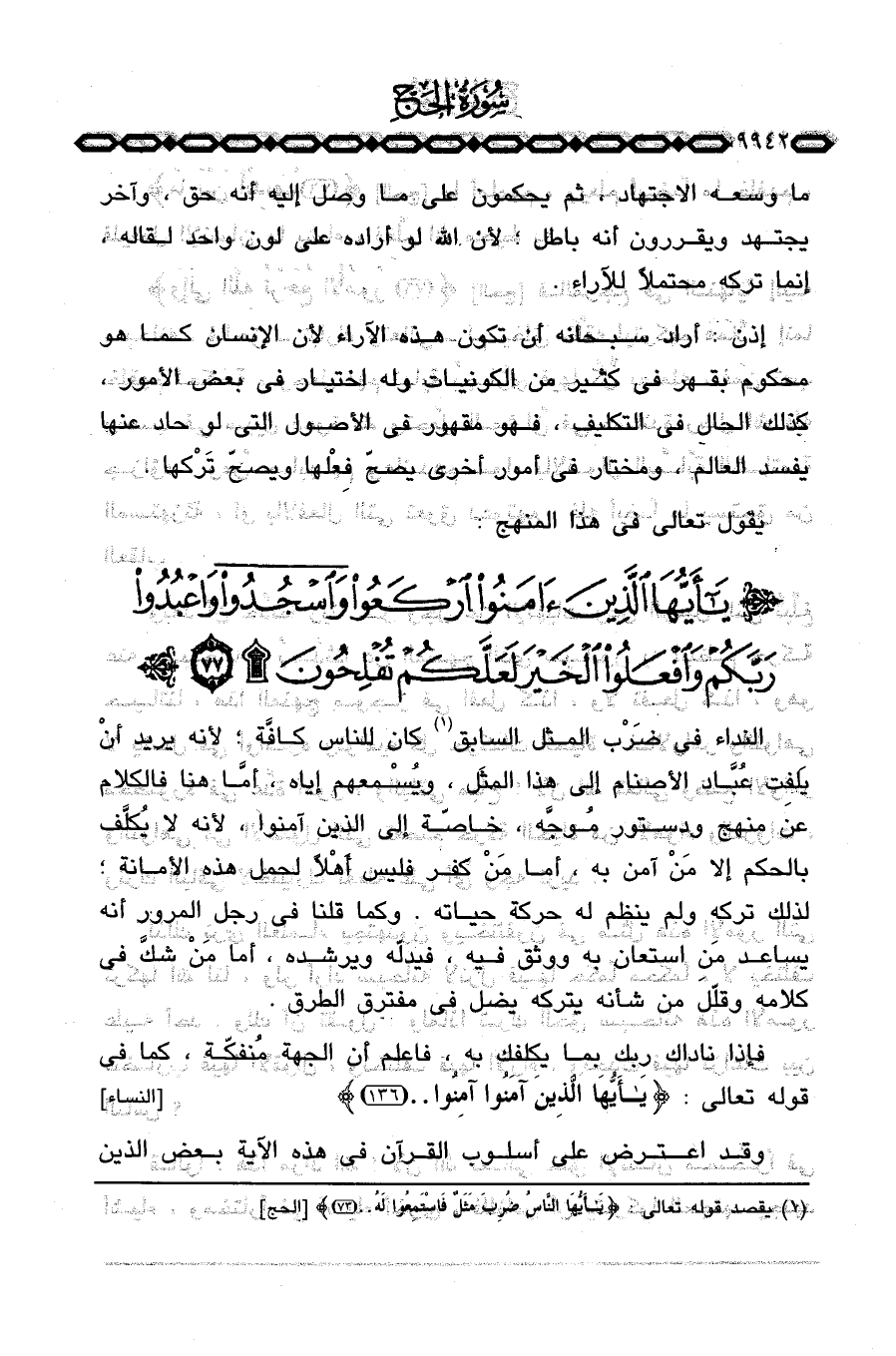 يقول تعالى في هذا المنهج: {ياأيها الذين آمَنُواْ اركعوا واسجدوا وَاعْبُدُواْ رَبَّكُمْ. .} .
