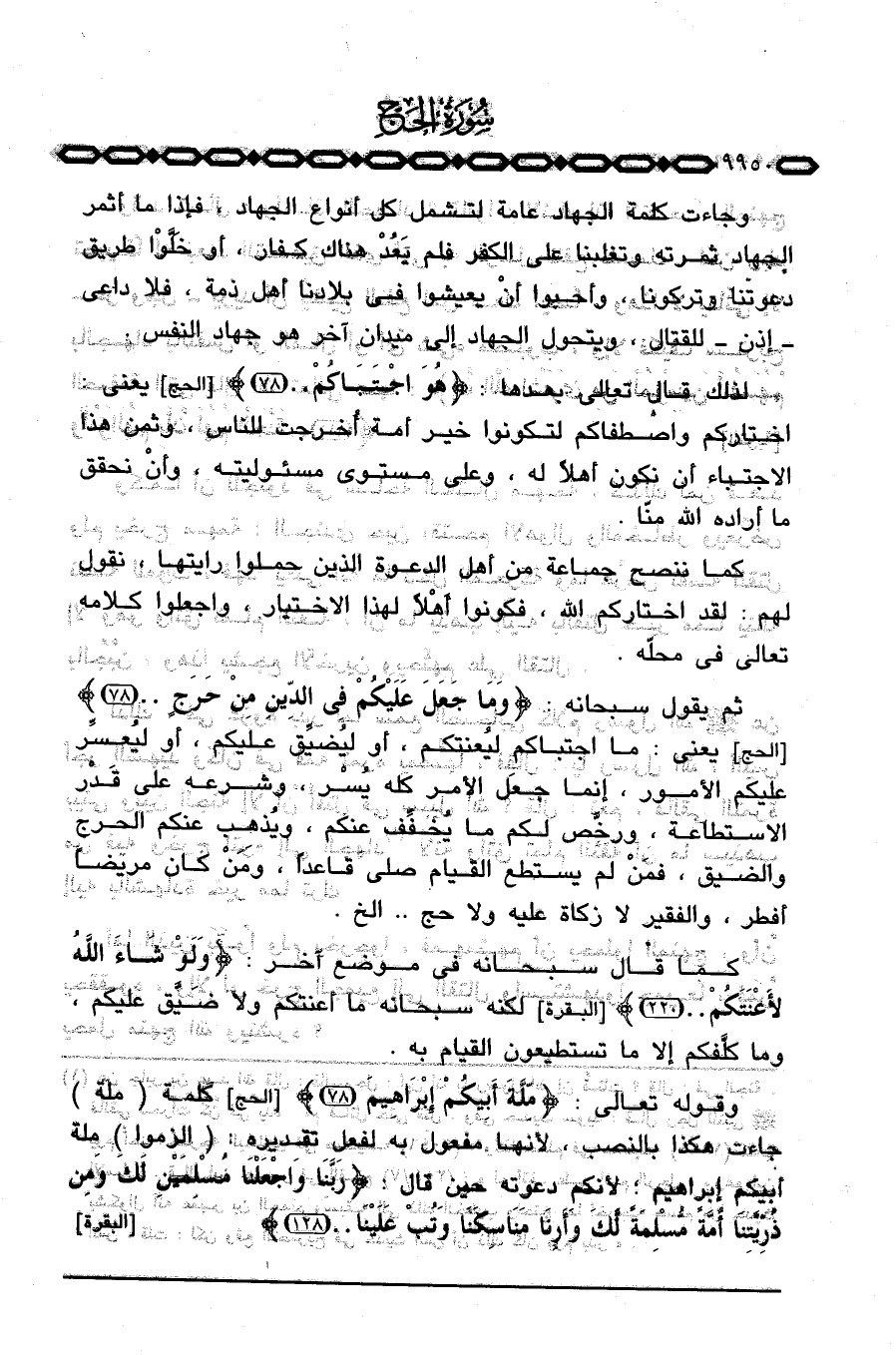 وقوله تعالى: {مِّلَّةَ أَبِيكُمْ إِبْرَاهِيمَ} [الحج: 78] كلمة (ملة) جاءت هكذا بالنصب، لأنها مفعول به لفعل تقديره: (الزموا) مِلة أبيكم إبراهيم؛ لأنكم دعوته حين قال: {رَبَّنَا واجعلنا مُسْلِمَيْنِ لَكَ وَمِن ذُرِّيَّتِنَآ أُمَّةً مُّسْلِمَةً لَّكَ وَأَرِنَا مَنَاسِكَنَا وَتُبْ عَلَيْنَآ. .} [البقرة: 128]