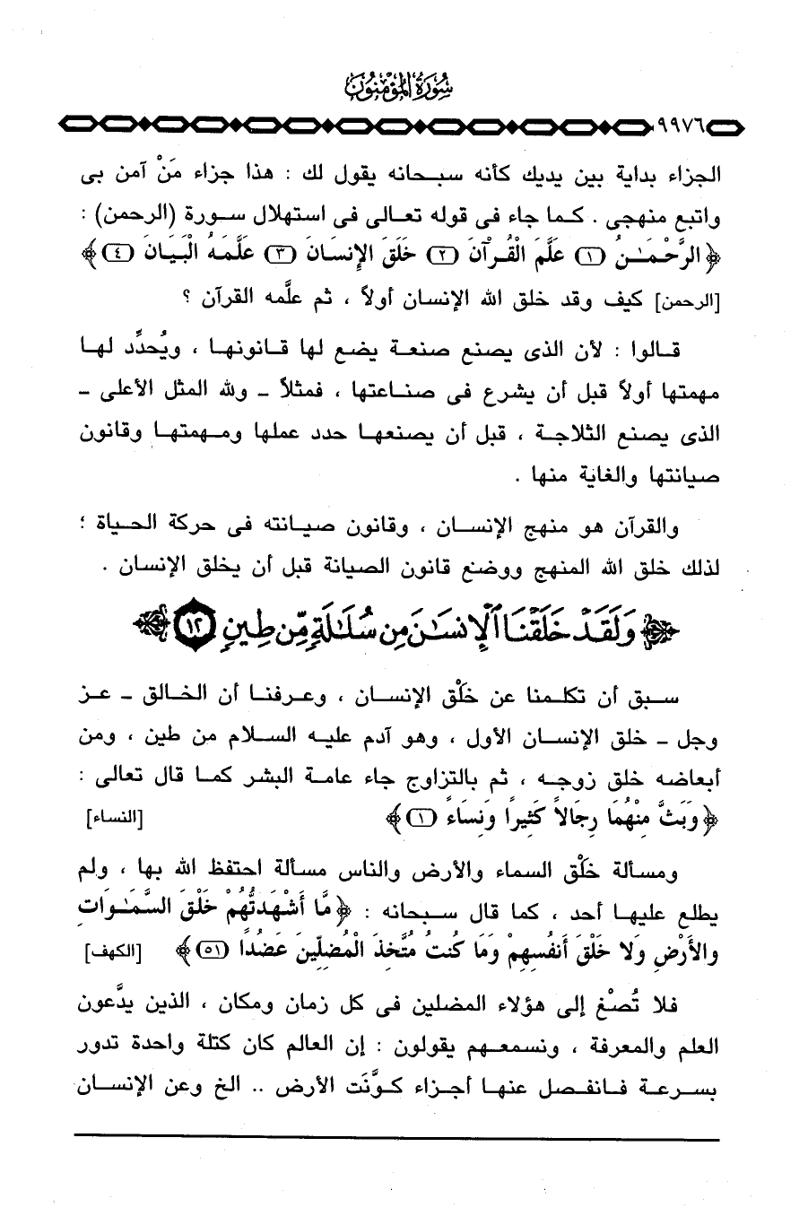 فلا تُصْغ إلى هؤلاء المضلين في كل زمان ومكان، الذين يدَّعون العلم والمعرفة، ونسمعهم يقولون: إن العالم كان كتلة واحدة تدور بسرعة فانفصل عنها أجزاء كوَّنَت الأرض. . الخ وعن الإنسان