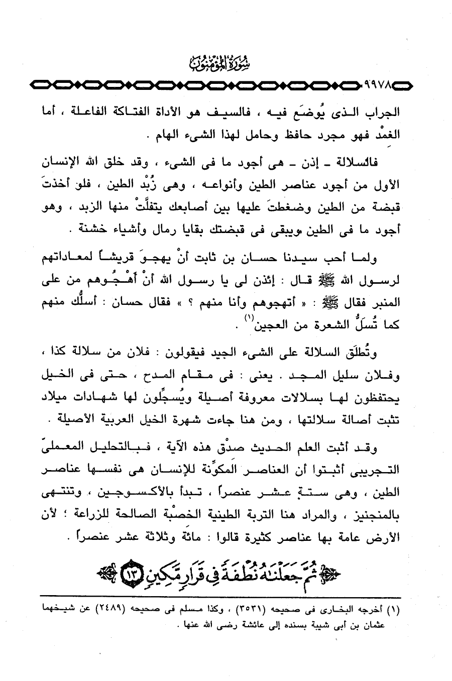 فالسلالة - إذن - هي أجود ما في الشيء، وقد خلق الله الإنسان الأول من أجود عناصر الطين وأنواعه، وهي زُبْد الطين، فلو أخذتَ قبضة من الطين وضغطتَ عليها بين أصابعك يتفلَّتْ منها الزبد، وهو أجود ما في الطين ويبقى في قبضتك بقايا رمال وأشياء خشنة.