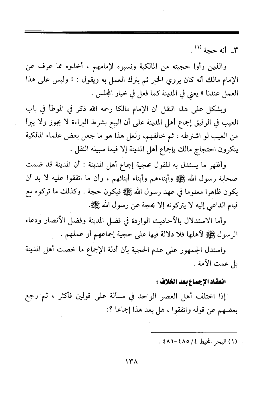 وأما الاستدلال بالأحاديث الواردة في فضل المدينة وفضل الأنصار ودعاء الرسول صلى الله عليه وسلم لأهلها فلا دلالة فيها على حجية إجماعهم أو عملهم.