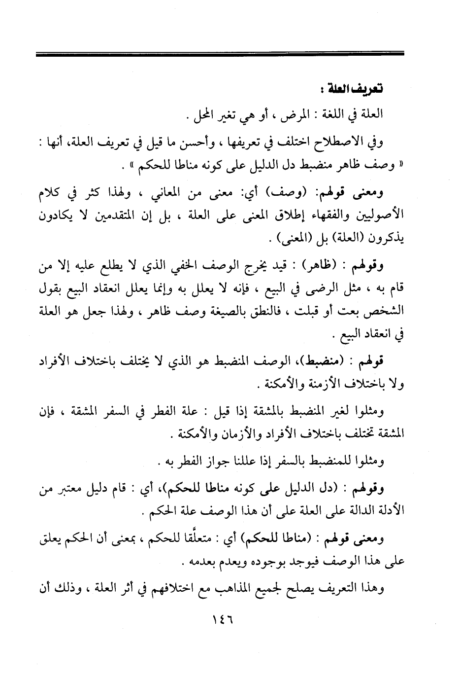 وهذا التعريف يصلح لجميع المذاهب مع اختلافهم في أثر العلة، وذلك أن