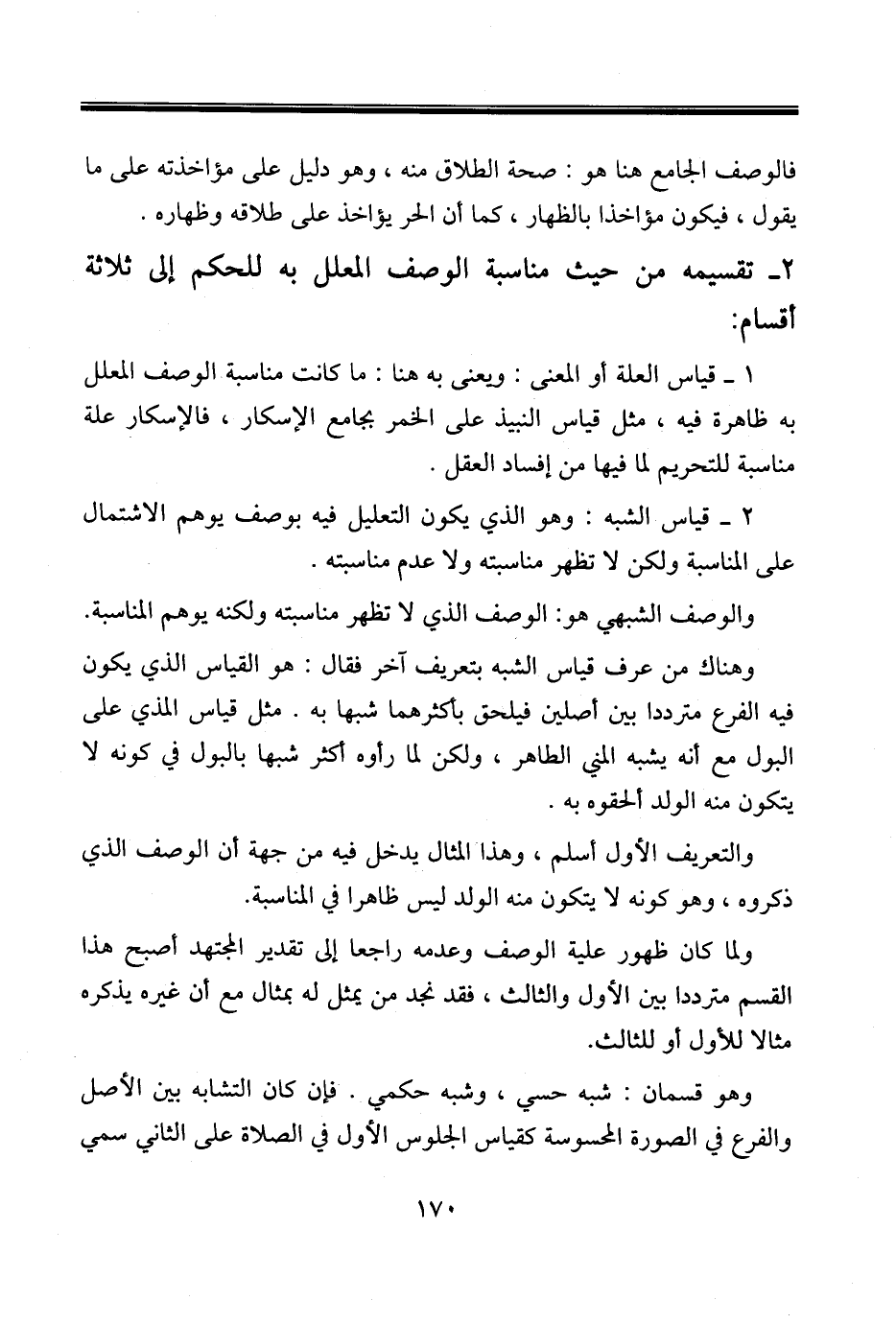 2 ـ قياس الشبه: وهو الذي يكون التعليل فيه بوصف يوهم الاشتمال على المناسبة ولكن لا تظهر مناسبته ولا عدم مناسبته.