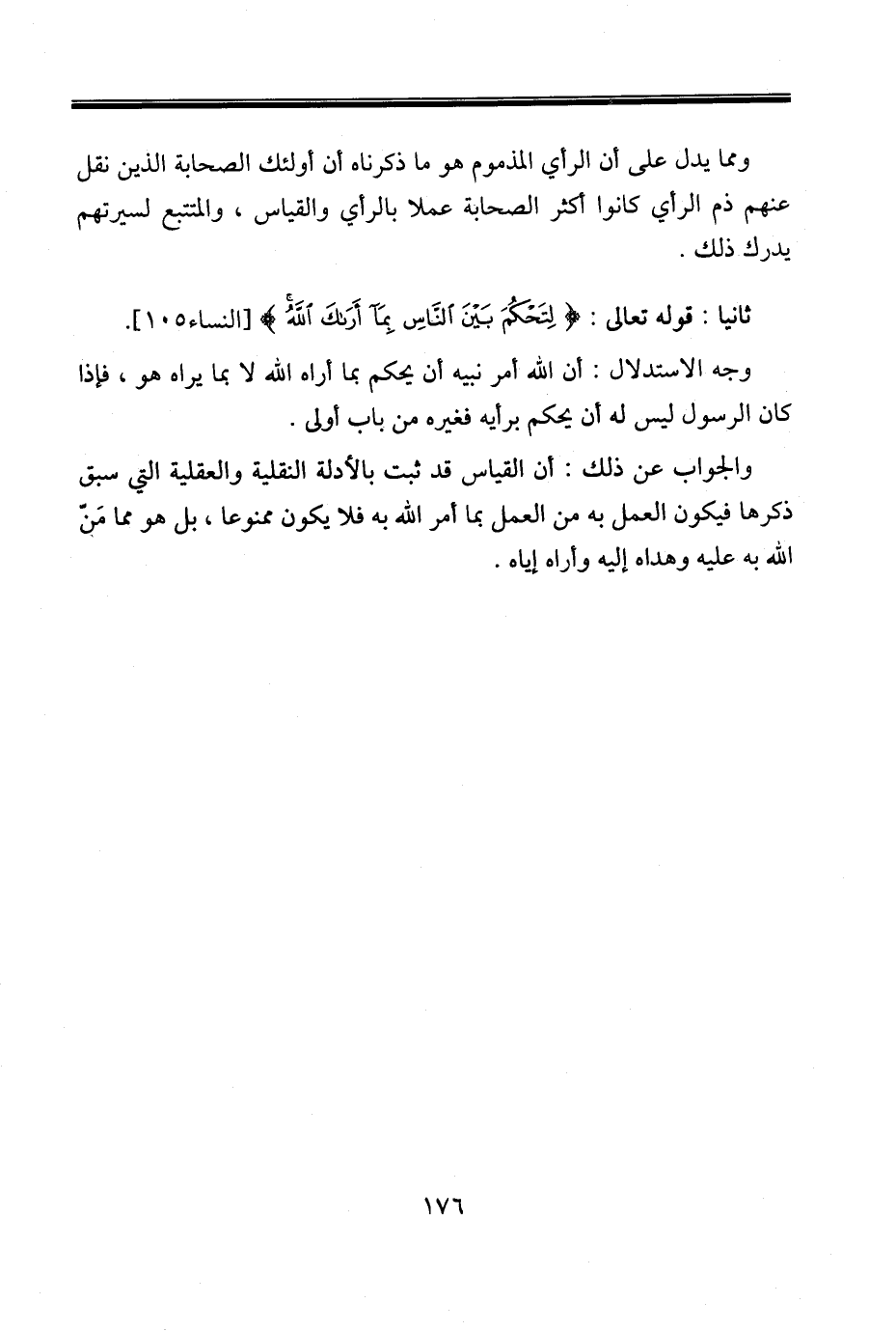 ومما يدل على أن الرأي المذموم هو ما ذكرناه أن أولئك الصحابة الذين نقل عنهم ذم الرأي كانوا أكثر الصحابة عملا بالرأي والقياس، والمتتبع لسيرتهم يدرك ذلك.
