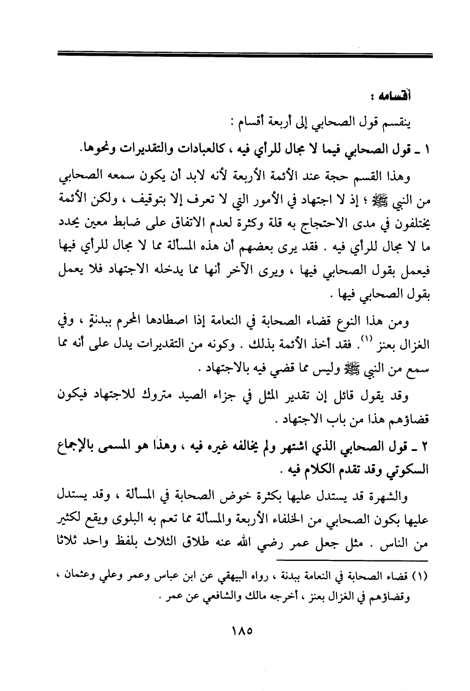 ينقسم قول الصحابي إلى أربعة أقسام: