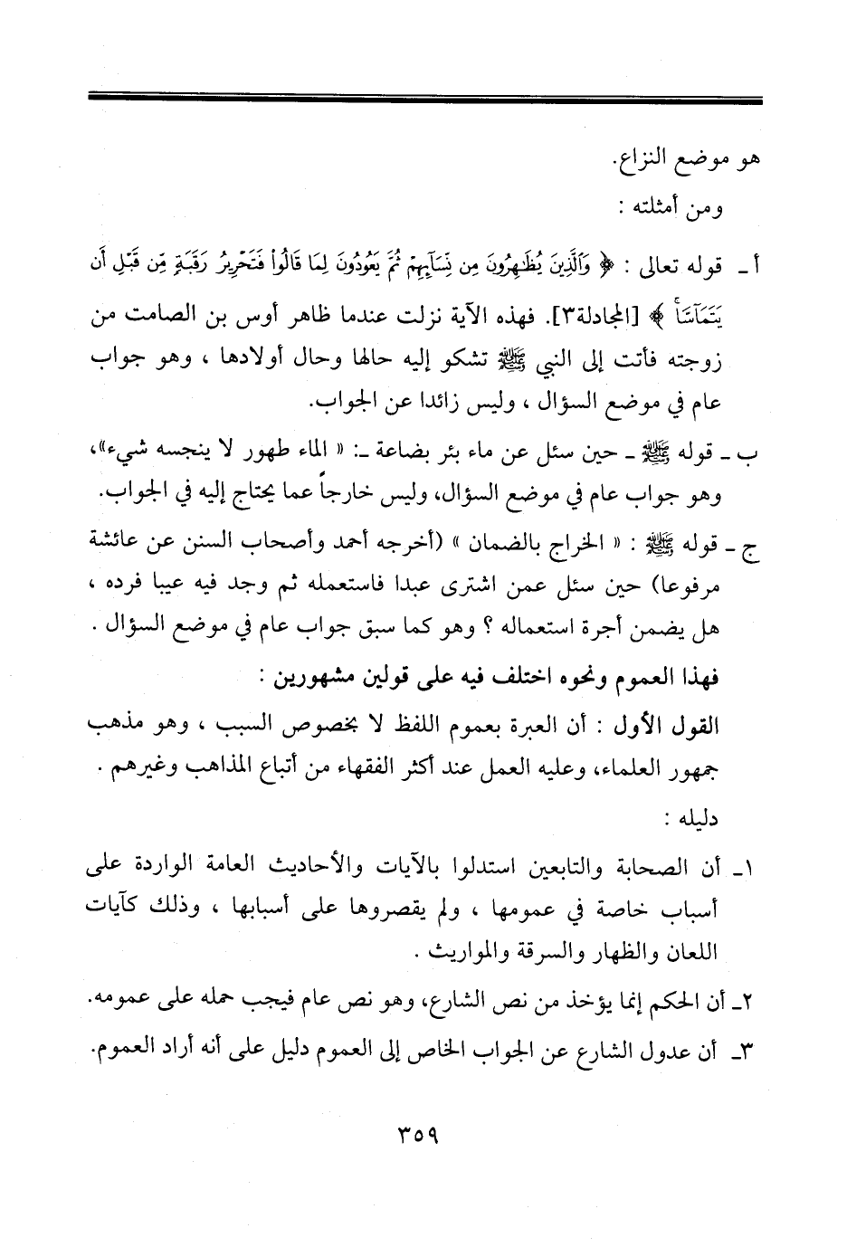 3 - أن عدول الشارع عن الجواب الخاص إلى العموم دليل على أنه أراد العموم.