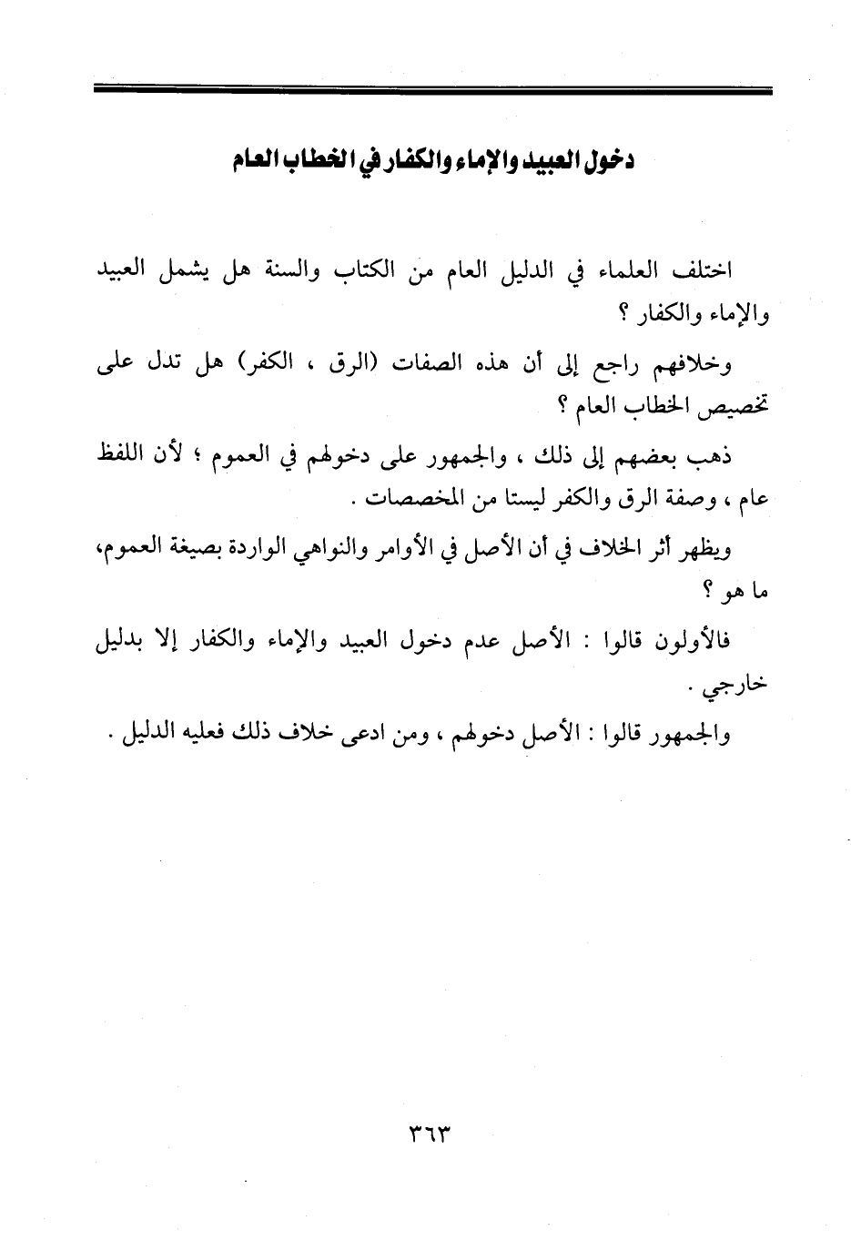 اختلف العلماء في الدليل العام من الكتاب والسنة هل يشمل العبيد والإماء والكفار؟