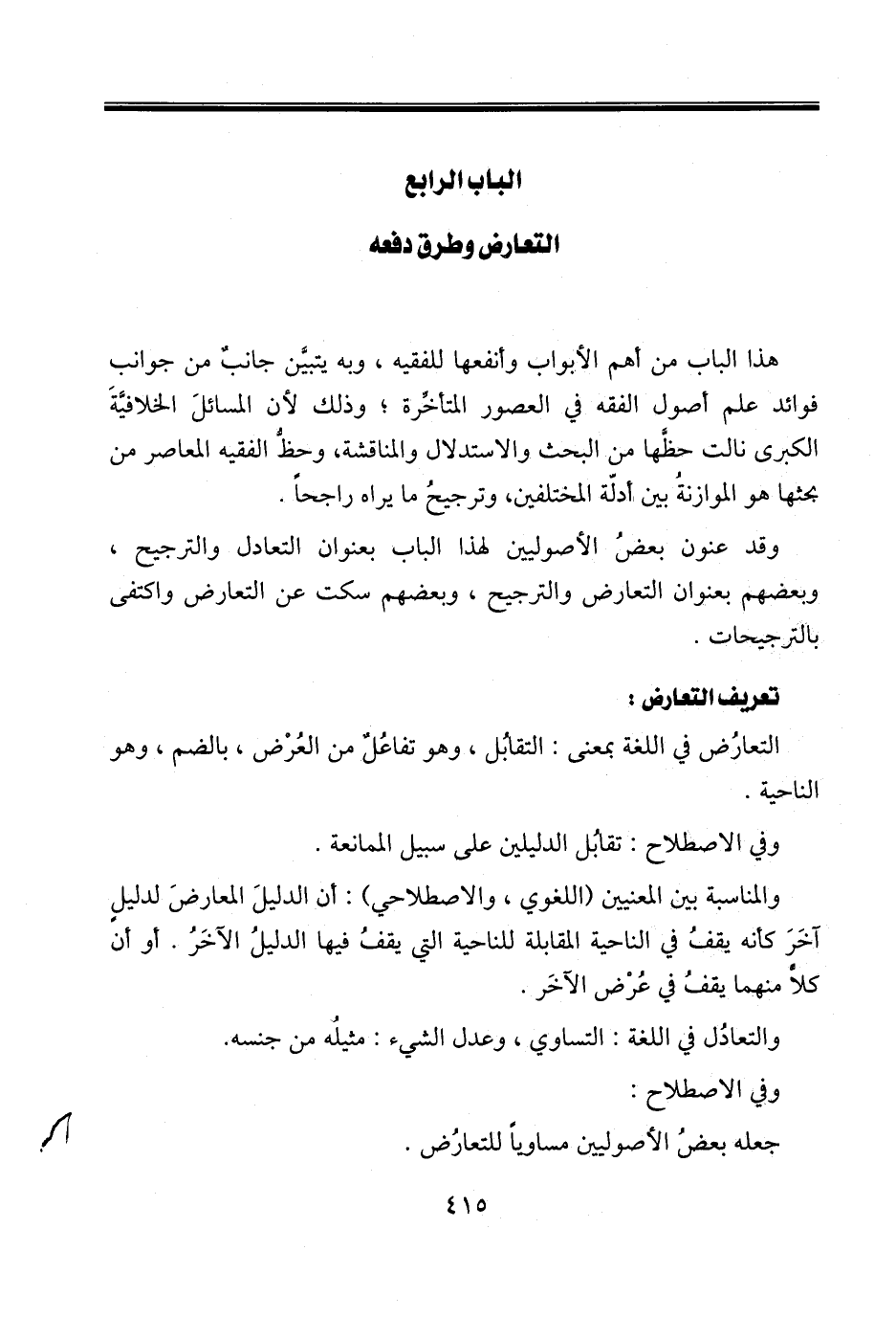 وقد عنون بعضُ الأصوليين لهذا الباب بعنوان التعادل والترجيح، وبعضهم بعنوان التعارض والترجيح، وبعضهم سكت عن التعارض واكتفى بالترجيحات.