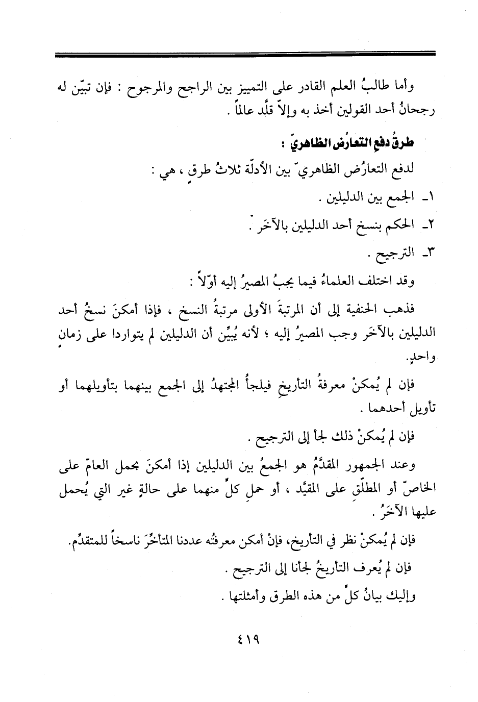 لدفع التعارُض الظاهري ّ بين الأدلّة ثلاثُ طرقٍ، هي: