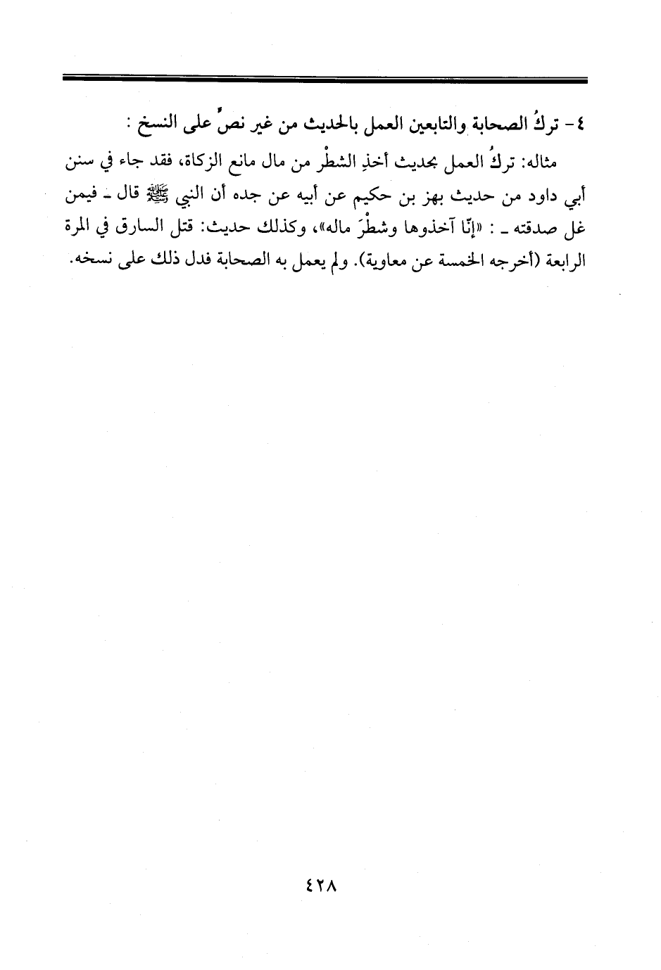 4 - تركُ الصحابة والتابعين العمل بالحديث من غير نصٍّ على النسخ: