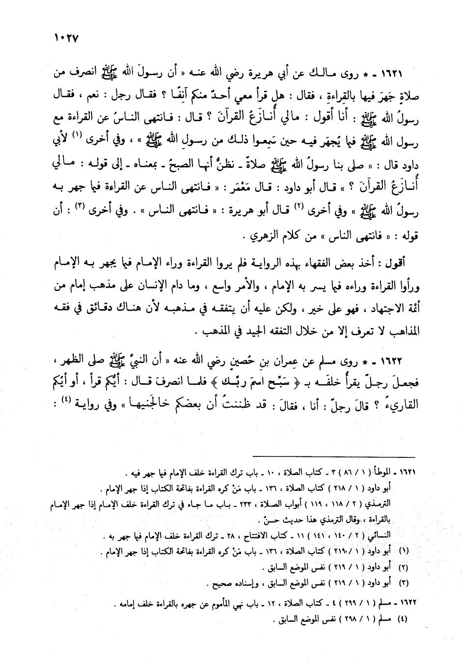(2) أبو داود (1/ 219) كتاب الصلاة، 136 - باب من كره القراءة بفاتحة الكتاب إذا جهر الإمام.