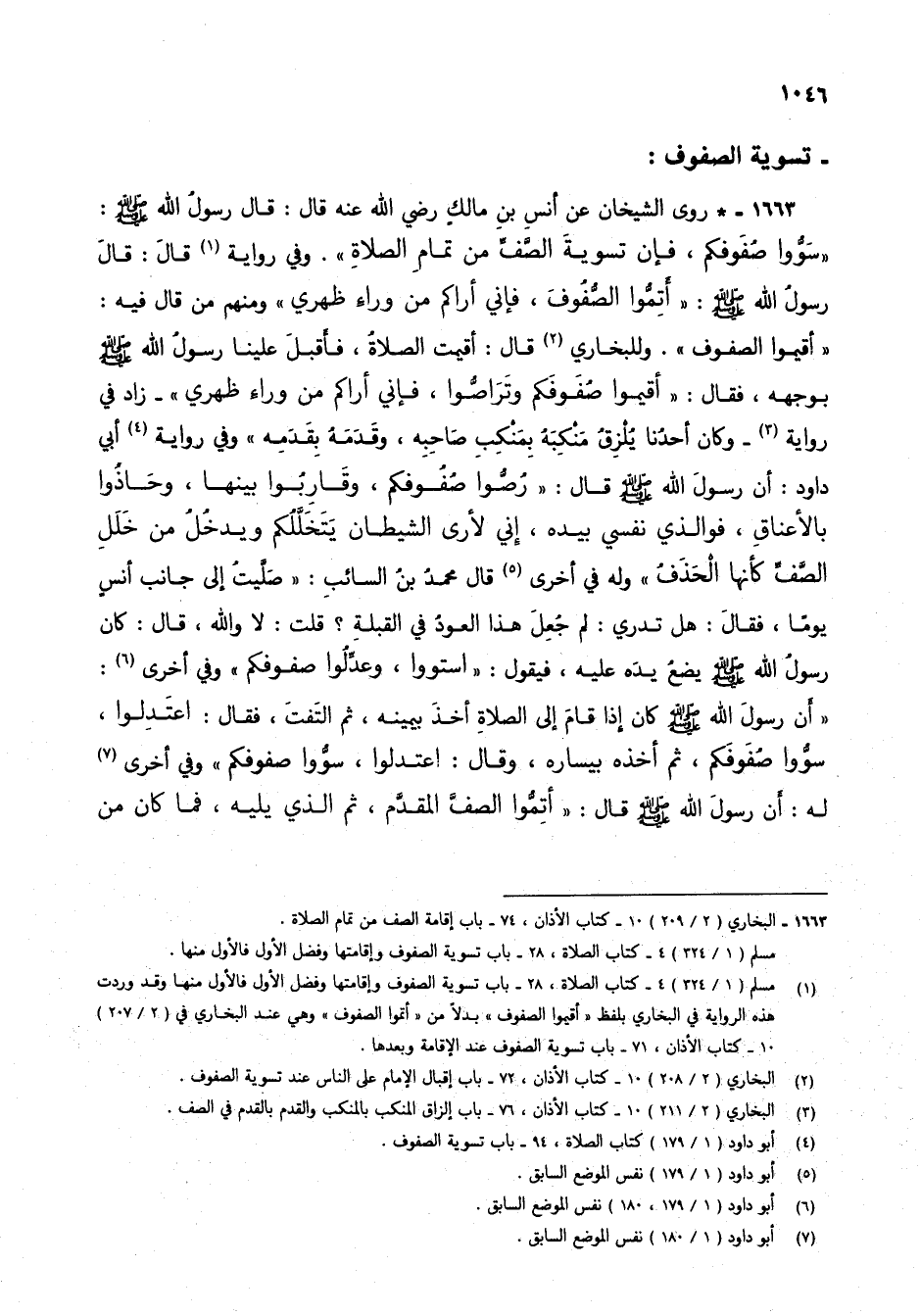 (4) البخاري (2/ 211) 10 - كتاب الأذان، 76 - باب إلزاق المنكب بالنكب والقدم بالقدم في الصف.