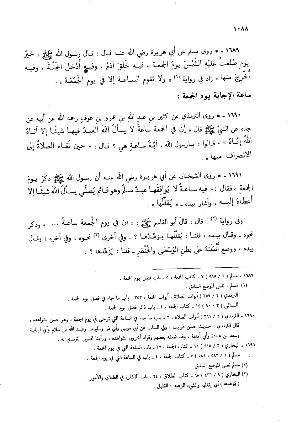 1691 - البخاري (2/ 415) 11 - كتاب الجمعة، 37 - باب الساعة التي في يوم الجمعة.