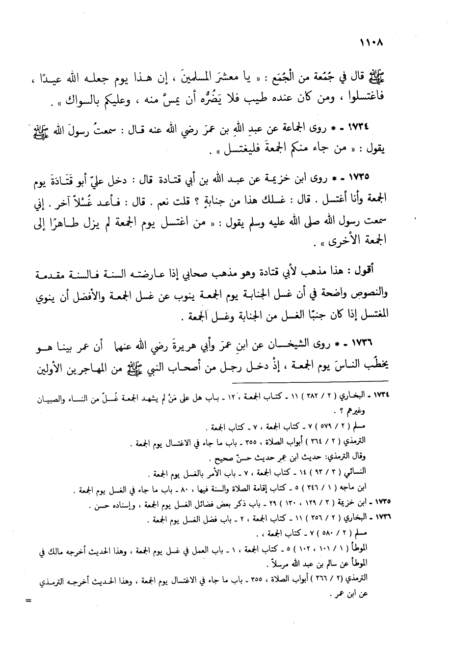 1734 - * روى الجماعة عن عبد الله بن عمر رضي الله عنه قال: سمعت رسول الله صلى الله عليه وسلم يقول: "من جاء منكم الجمعة فليغتسل".