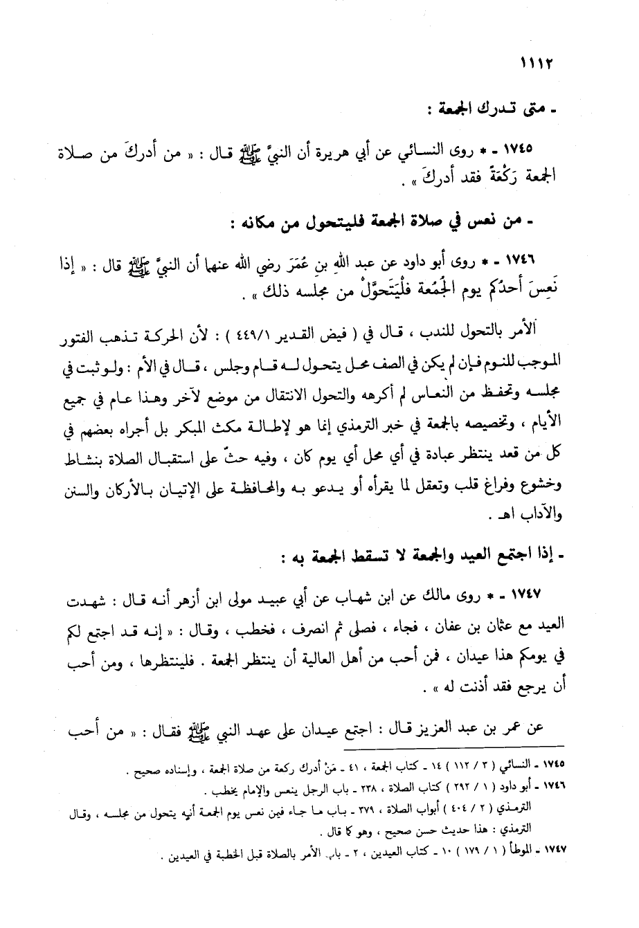 1745 - * روى النسائي عن أبي هريرة أن النبي صلى الله عليه وسلم قال: "من أدرك من صلاة الجمعة ركعة فقد أدرك".