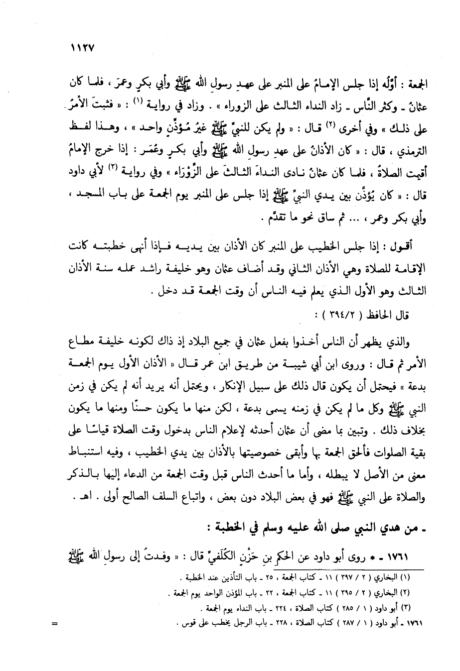 (3) أبو داود (1/ 285) كتاب الصلاة، 224 - باب النداء يوم الجمعة.