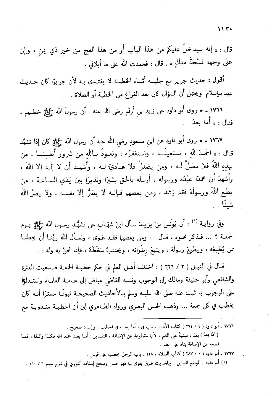 1766 - * روى أبو داود عن زيد بن أرقم رضي الله عنه أن رسول الله صلى الله عليه وسلم خطبهم، فقال: "أما بعد".