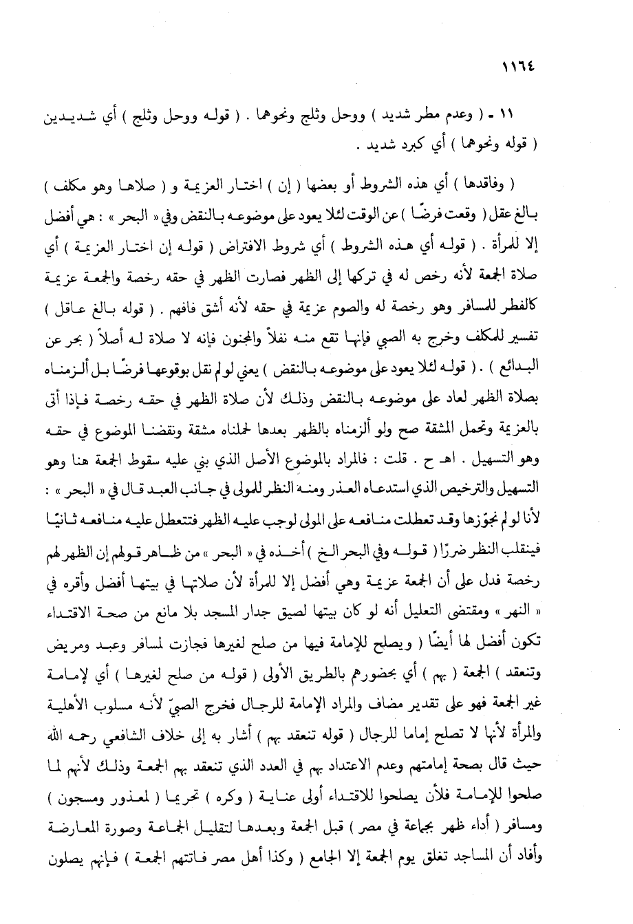 11 - (وعدم مطر شديد) ووحل وثلج ونحوهما. (قوله ووحل وثلج) أي شديدين (قوله ونحوهما) أي كبرد شديد.