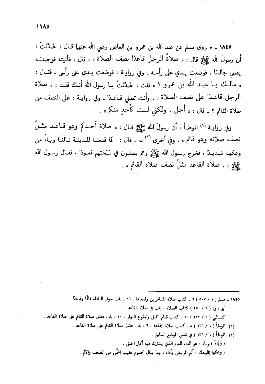 (1) الموطأ (1/ 136) 8 - كتاب صلاة الجماعة، 6 - باب فضل صلاة القائم على صلاة القاعد.