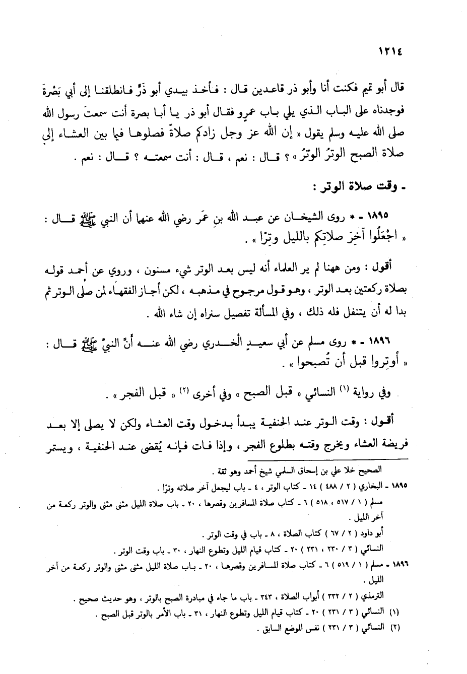 1896 - * روى مسلم عن أبي سعيد الخدري رضي الله عنه أن النبي صلى الله عليه وسلم قال: "أوتروا قبل أن تصبحوا".