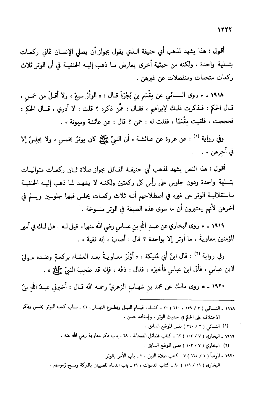 1918 - * روى النسائي عن مقسم بن بجرة قال: "الوتر سبع، ولا أقل من خمس، قال الحكم: فذكرت ذلك لإبراهيم، فقال: عمن ذكره؟ قلت: لا أدري، قال الحكم: فحججت، فلقيت مقسماً، فقلت له: عمن؟ قال: عن عائشة وميمونة".