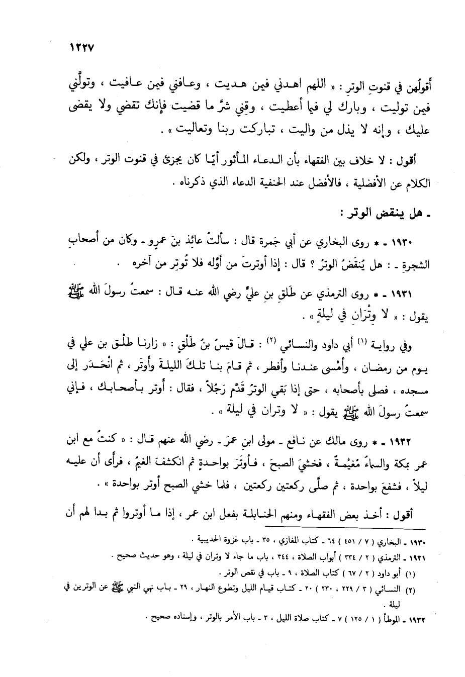 (1) أبو داود (2/ 67) كتاب الصلاة، 9 - باب في نقص الوتر.
